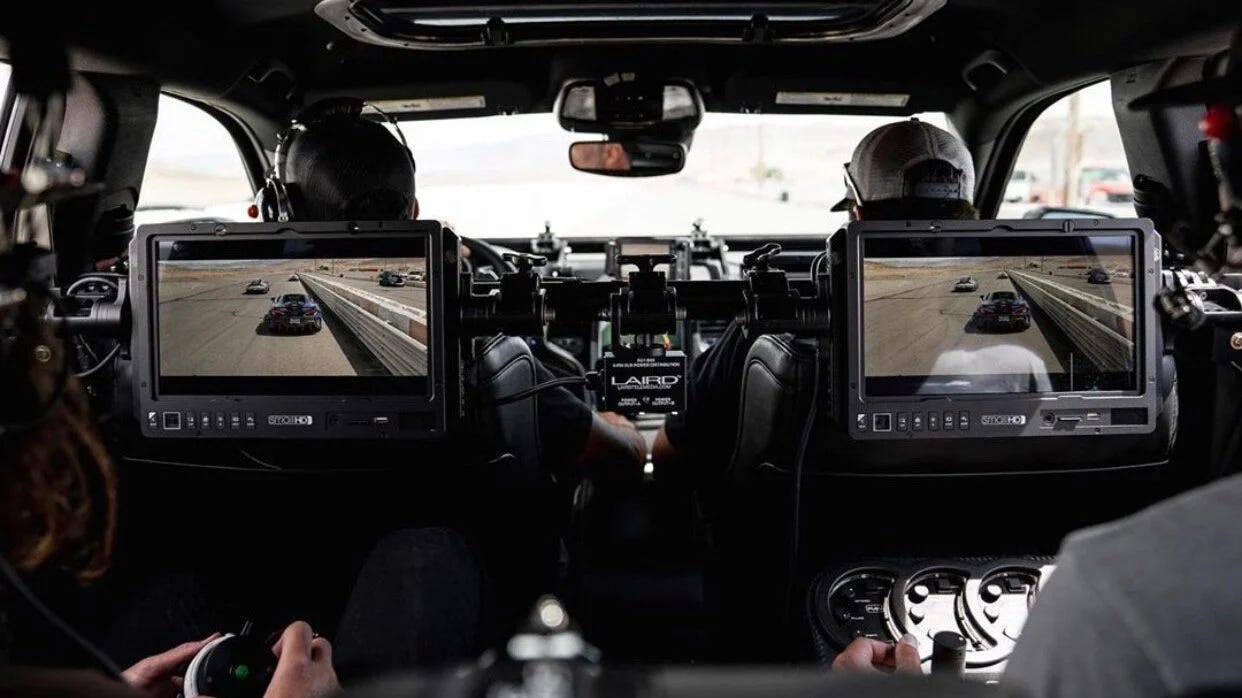 Everyone in the car has a job to do. The driver is keeping his eye on the picture car (the car on screen), the crane op is working the crane, the head tech is running the head, the DP is running the camera, the camera assistant is pulling focus, and the director is directing.